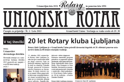 Z ustanovitvijo samostojnega distrikta obujamo časnikarsko tradicijo z novim glasilom, Unionskim Rotarjem, katerega ime se priklanja stalnici obeh klubskih inavguracij in pomembnih srečanj, hotelu Union, kjer še vedno vsako sredo potekajo srečanja Rotary kluba Ljubljana.
