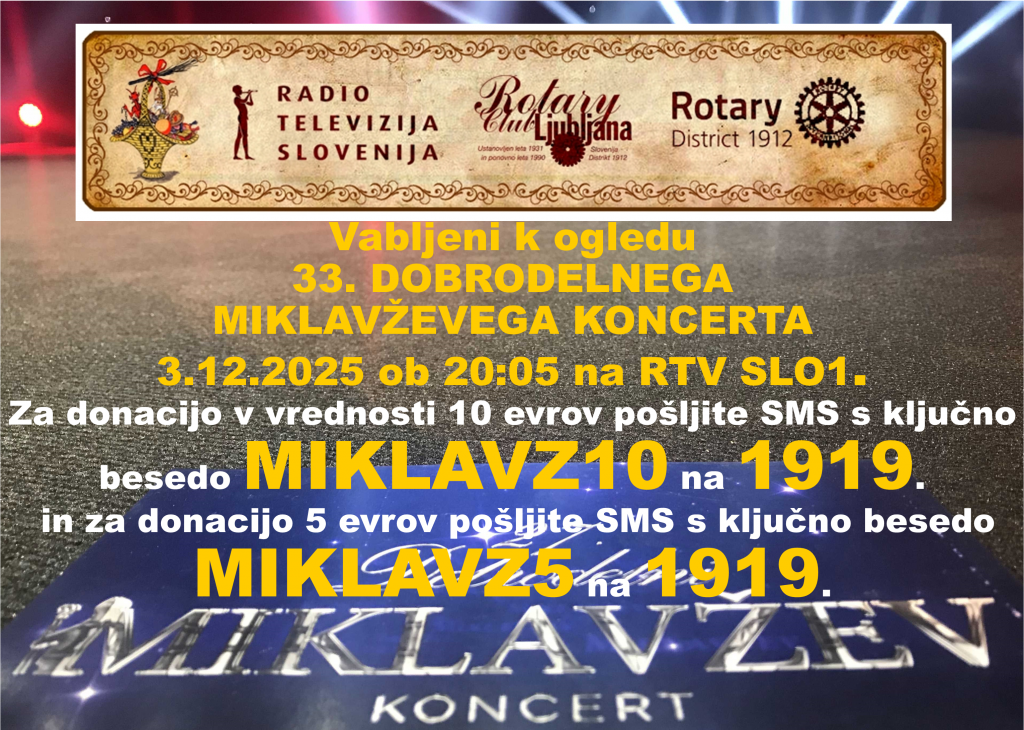Letos bomo sredstva zbirali v okviru 33. Miklavževega koncerta, ki si ga boste lahko ogledali na 1. programu TV Slovenija, v sredo, 3. decembra 2025, ob 20:05.